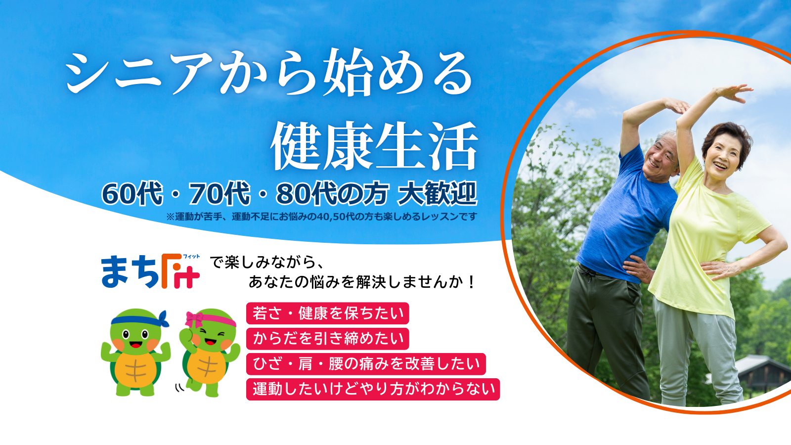 まちFitは、「いつまでも自分の足で歩き続けたい」「介護に頼らない毎日を送りたい」という想いを応援する、
